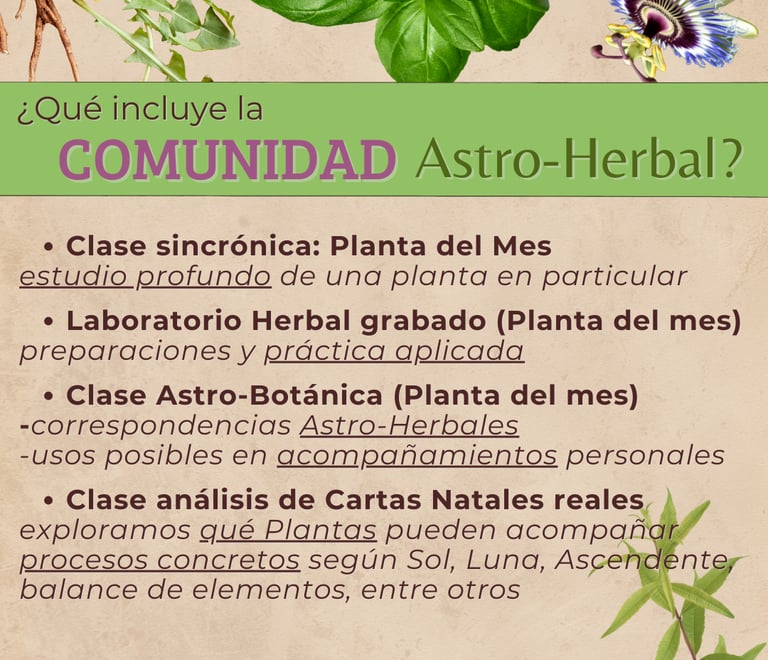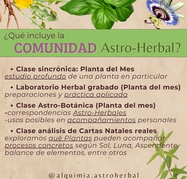 ✨ La Comunidad Astro-Herbal es un espacio de estudio, práctica y resonancia colectiva, donde el aprendizaje se construye en diálogo, exploración y acompañamiento mutuo.